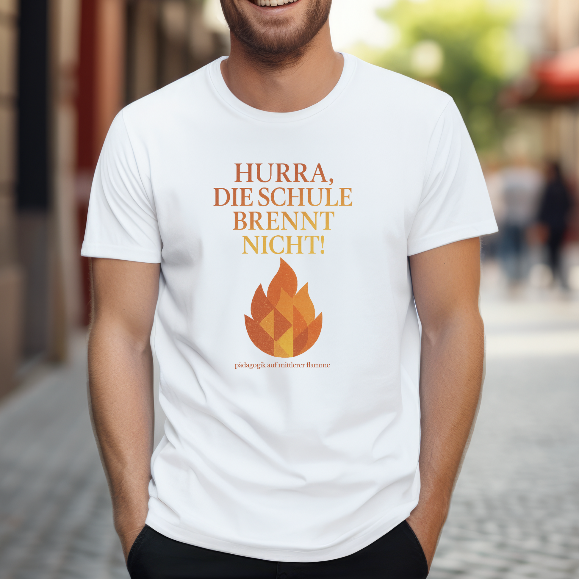 Du gibst jeden Tag dein Bestes - nicht mit Drama, sondern mit Verlässlichkeit, Haltung und Humor. Dieses Shirt ist für all jene, die wissen: Gute Pädagogik loder nicht, sie glimmt konstant auf mittlerer Flamme. Ein Augenzwinkern für den Alltag zwischen Klassenbuch, Kaffeeduft und kleinen Bildungswundern. Perfekt für Lehrer, die mit Gelassenheit und klarem Kopf durchs Feuer gehen - ohne je auszubrennen.