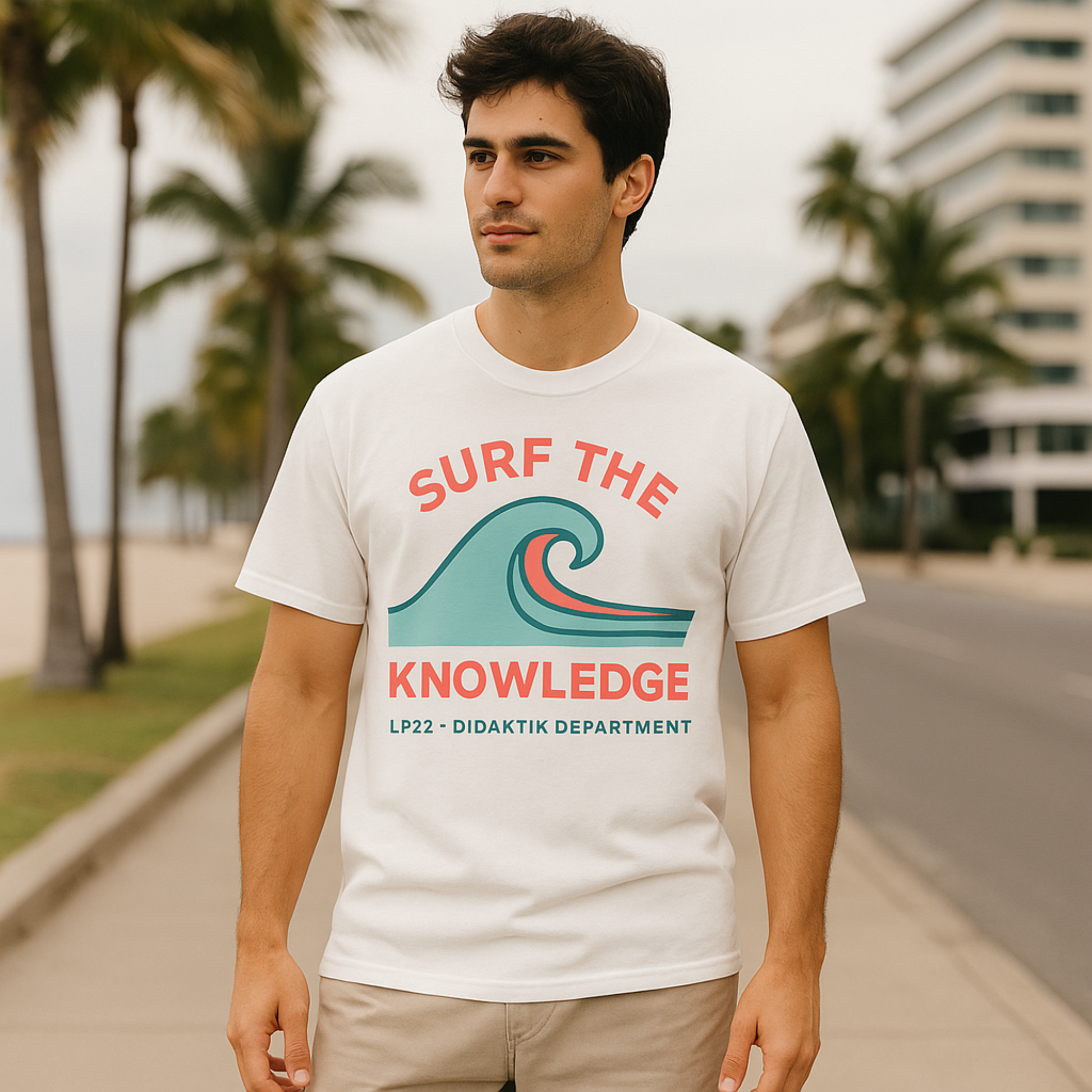 Dieses Shirt ist eine Einladung, die Wellen des Lebens nicht nur zu reiten, sondern dabei klüger, mutiger und freier zu werden. Es erinnert dich daran, dass Lernen nicht nur im Klassenzimmer stattfindet, sondern überall - am Strand, im Wind, auf jeder neuen Welle. Mit seinem minimalistischen Design und den frischen Sommerfarben bringt es die Leichtigkeit des Ozeans und die Tiefe der Erkenntnis zusammen. Für alle, die Bildung nicht als Pflicht sehen, sondern als Abenteuer.